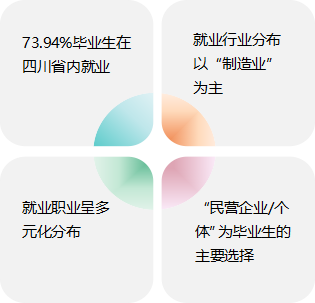 学校2020届毕业生中73.94%毕业生选择在四川省内就业,服务本地经济发展;就业行业以“制造业”为主;就业职业呈多元化分布;就业单位以“其他企业”为主。