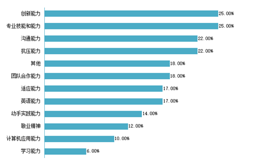 图5- 6 2020届本科毕业生认为重要性占比排名前十位的基础能力及其水平